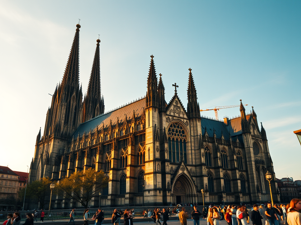 كاتدرائية كولونيا (Kölner Dom): واحدة من أعظم إنجازات العمارة القوطية في العالم، بدأ بناؤها عام 1248. تتميز بأبراجها العالية وتصميمها الضخم، مع نوافذ زجاجية ملونة تروي قصصاً دينية. هذه الكاتدرائية تُعتبر رمزاً للتفاني الديني والجمال الفني.