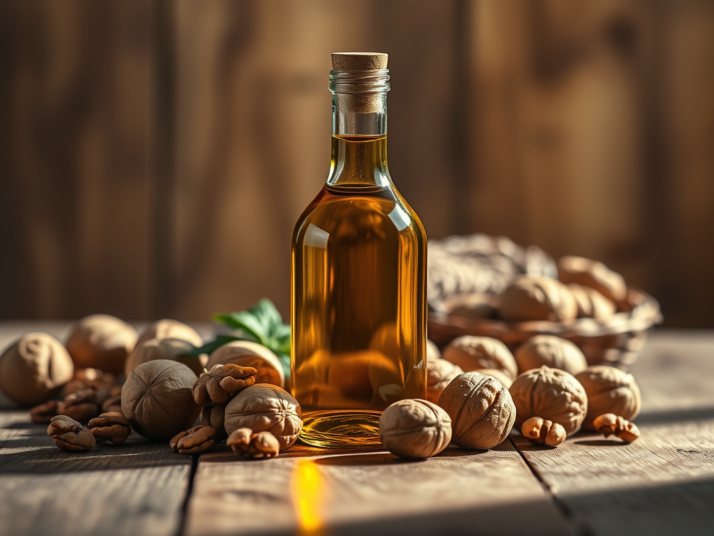 - الوصف: يُستخرج زيت الجوز من حبات الجوز ويتميز بنكهة جوزية غنية، ويعد من الزيوت الفاخرة.