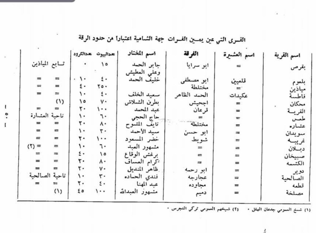 المصدر: وجيه الجزار، المعلومات عن سنجق دير الزور 1922م (مخطوطة/بحث توثيقي متداول محليًا).